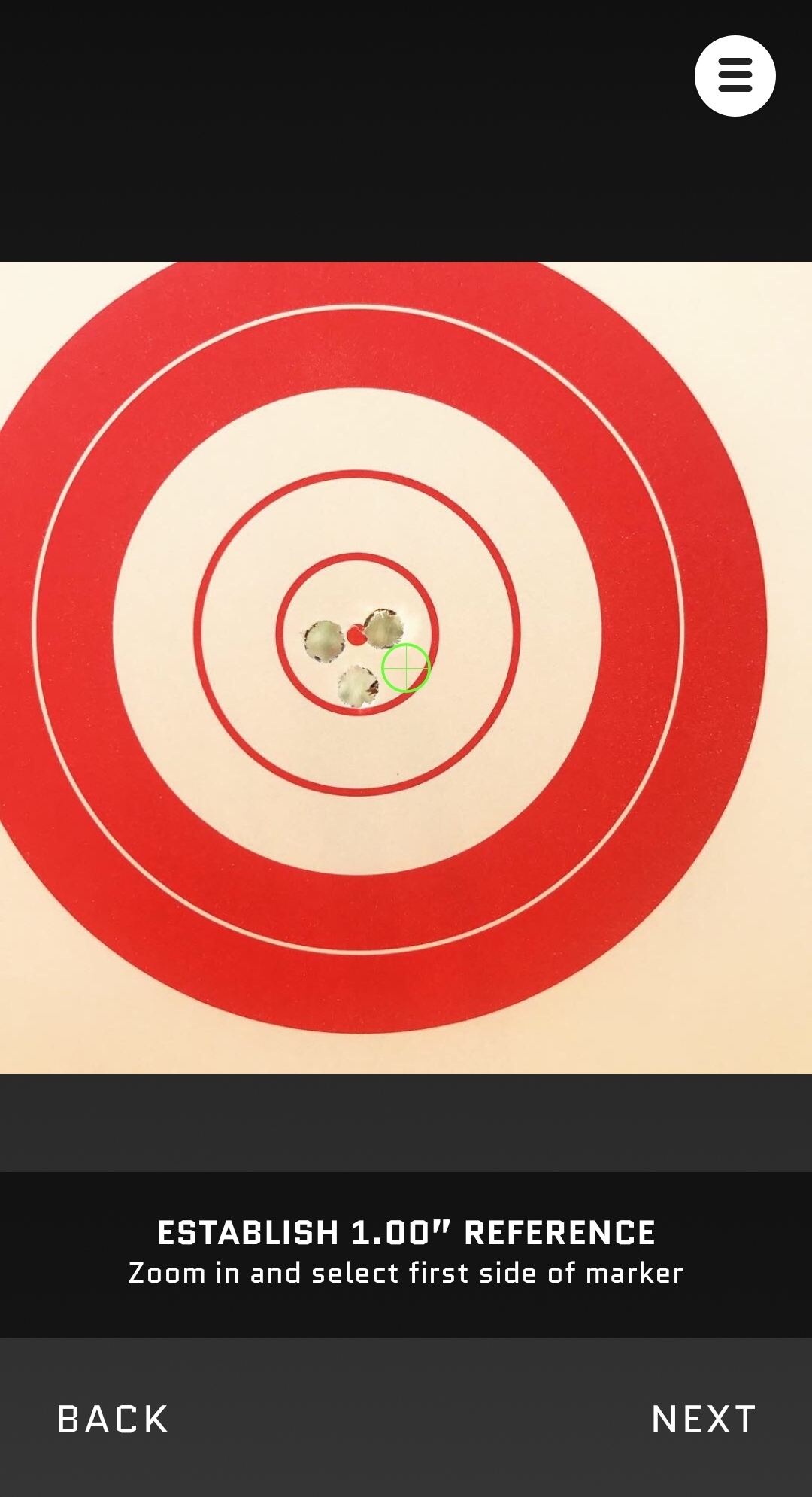 For the purposes of this review I chose a picture that was already in my Library that my mate Keiran sent me to analyze using the app. Once you have selected the image it asks you to ESTABLISH 1.00″ REFERENCE. For the purpose of this target the 1 inch reference is the red circle in the center.
