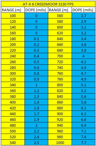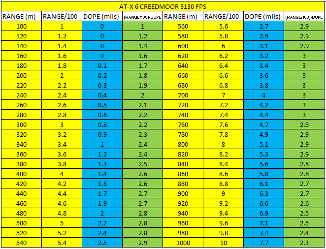 Step 1: List out your known DOPE out to the range you intend on shooting in increments of say 20m from your zero. If you aren’t zeroing at 100m/y for a centerfire you are doing it wrong! We can discuss that another time though.