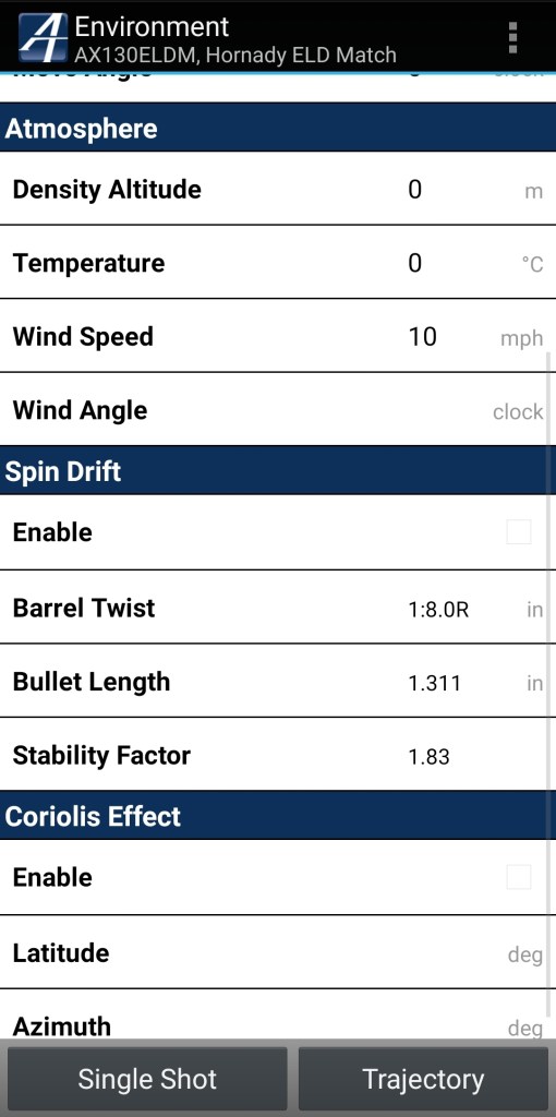 Step 1: Turn off spin drift in your ballistic calculator. Here I’m using the Applied ballistics app on my phone.