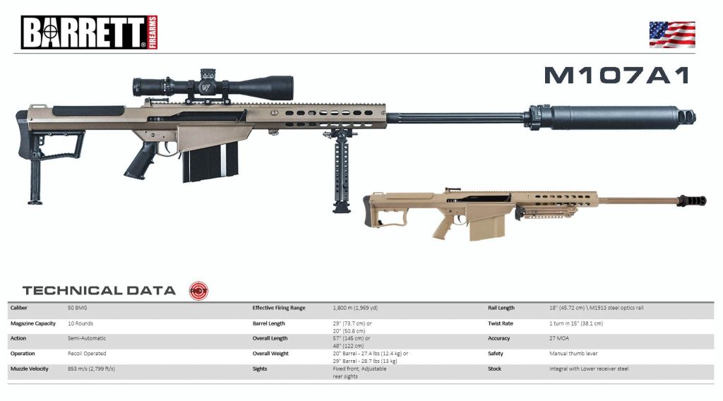 Having personally fired the Barrett M107 at close to 2000m I can attest to its effectiveness and seeing it used on operations in Iraq and Afghanistan I can say it will be a great tool for the Anti Materiel Rifle role. Quick follow up shots of Armour Piercing Incendiary ammunition natures on high value material targets will be devastating.